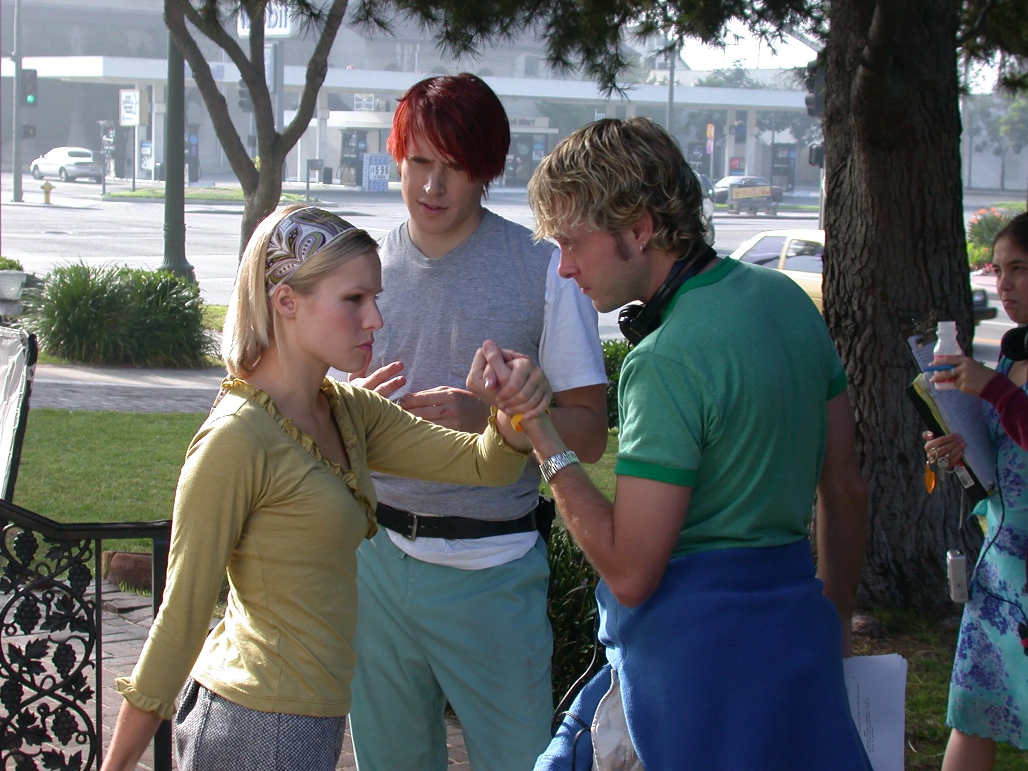 Above: Director Tim Garrick working with Actress Kristen Bell and Matthew McCallum.